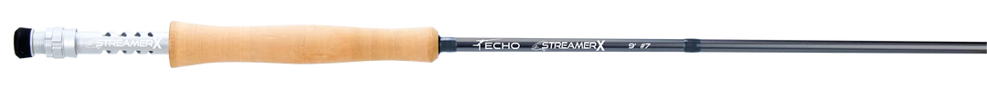 StreamerX rods are all 9’ long and come in a 6, 7, and 8 weight. They have all titanium guides and Kelly’s favorite handle shape. They come with a hard case and are 4 pieces to travel well.