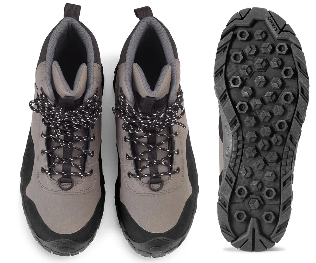 The men’s Clearwater rubber sole wading boot is built with a full synthetic leather upper that provides comfort and durability without excessive seams. The boot is protected by a scratch rubber toe, vamp, and heel counter for added durability, and a heavy-duty rubber toe bumper protects the foot in tough wading conditions. An integrated EVA foam footbed offers all-day comfort and a wider fit. A phylon midsole and ESS plate provide stability, and excellent stud retention. The rubber outsole option has an aggressive lug design and strategic stud locations for enhanced grip. A complete upgrade of the best value-priced wading boot on the market. In gravel.