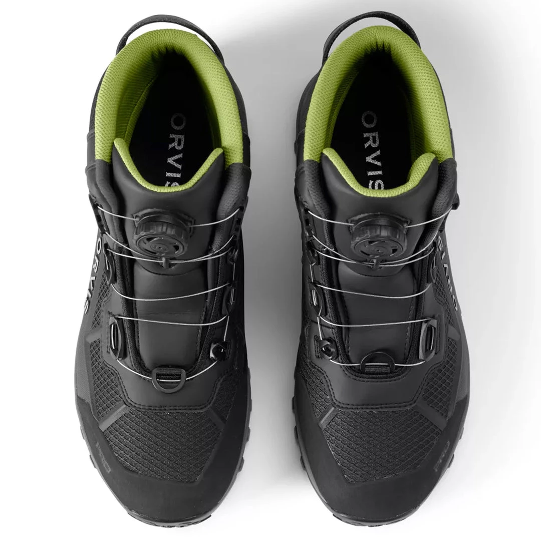 A perfect fit means more miles in comfort, and covering water is what the PRO BOA Wading Boot’s all about. Featuring the BOA Fit System this is, by far, the most advanced wading boot ever. The PRO Wading Boot was an industry-first collaborative effort with Michelin®, built on an outsole compound specifically designed for fly fishing. This revolutionary new sole design is an industry-disrupting advance in wet rubber traction. The Michelin Outdoor Extreme outsole offers 25% better abrasion resistance and a resounding 43% improvement in wet rubber traction over the competition. Using Michelin tire geometry, it offers a wider footprint for stability, a higher ratio of surface contact, and a lug pattern that reduces shock and improves pressure distribution. The two-layer midsole has a co-molded ESS plate that provides improved stud retention and torsional stability. Orvis partnered with OrthoLite® to create a 3D molded X25 insole designed for high-impact sports, delivering maximum comfort and arch support. An industry-first cast PU upper eliminates seams while providing a zoned cage for added stability, grip, and extreme abrasion resistance without the added bulk. The boot is higher cut for ankle support and lined with closed-cell foam. Scratch rubber at the toe cap and heel for abrasion resistance, an oversized heel pull for easier on-and-off, and tightly woven laces reduce broken laces. In shadow.