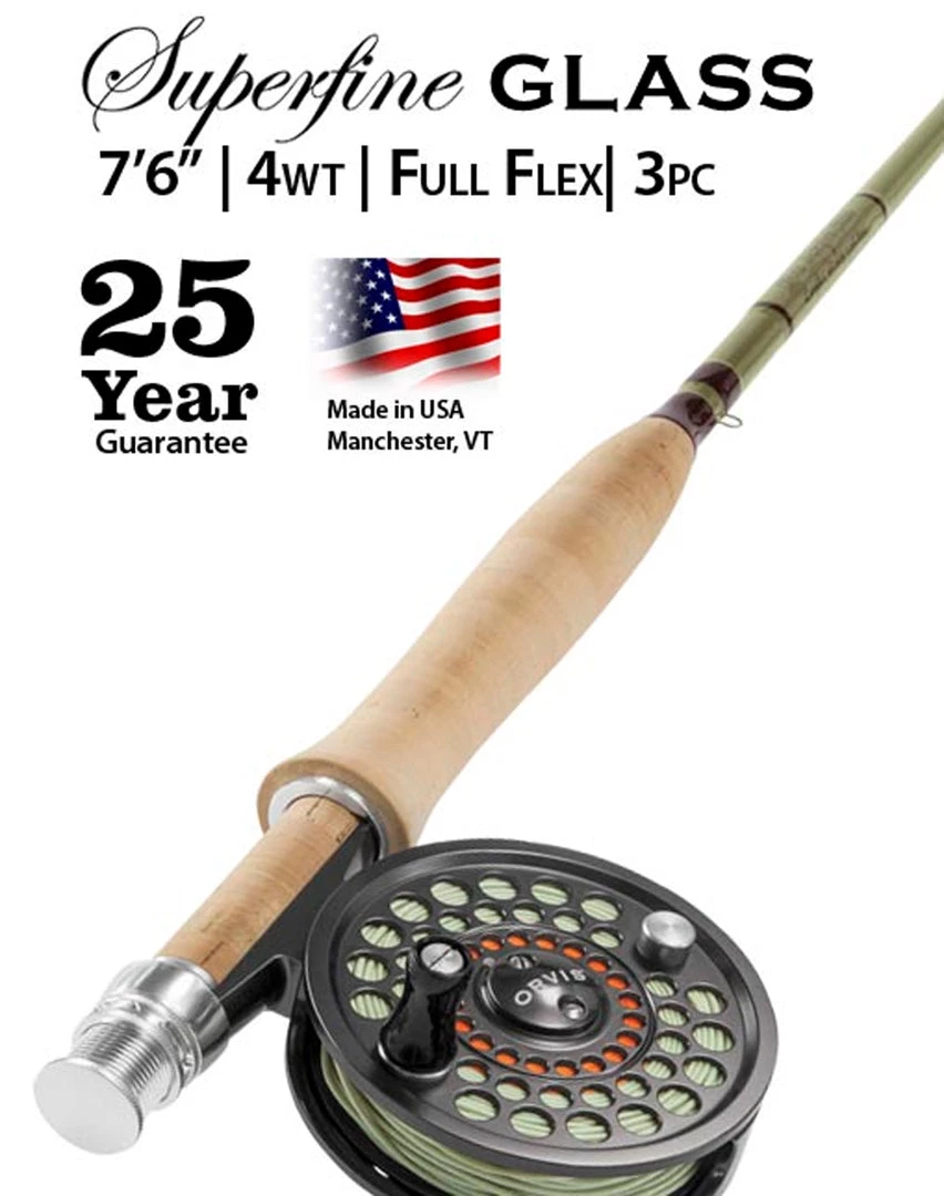 Small canyon streams, quiet back eddies, and high mountain rivers ask for perfect presentation. This is not the place for the “big guns.” This is the realm of accuracy, delicacy, finesse. The Superfine® Glass throws dry flies with a balanced touch and will even sling streamers when necessary. With classic fiberglass action—soft and forgiving— this is the rod for your small–stream adventures. No details were spared in the making of this soon–to–be classic. Manchester, Vermont, USA.